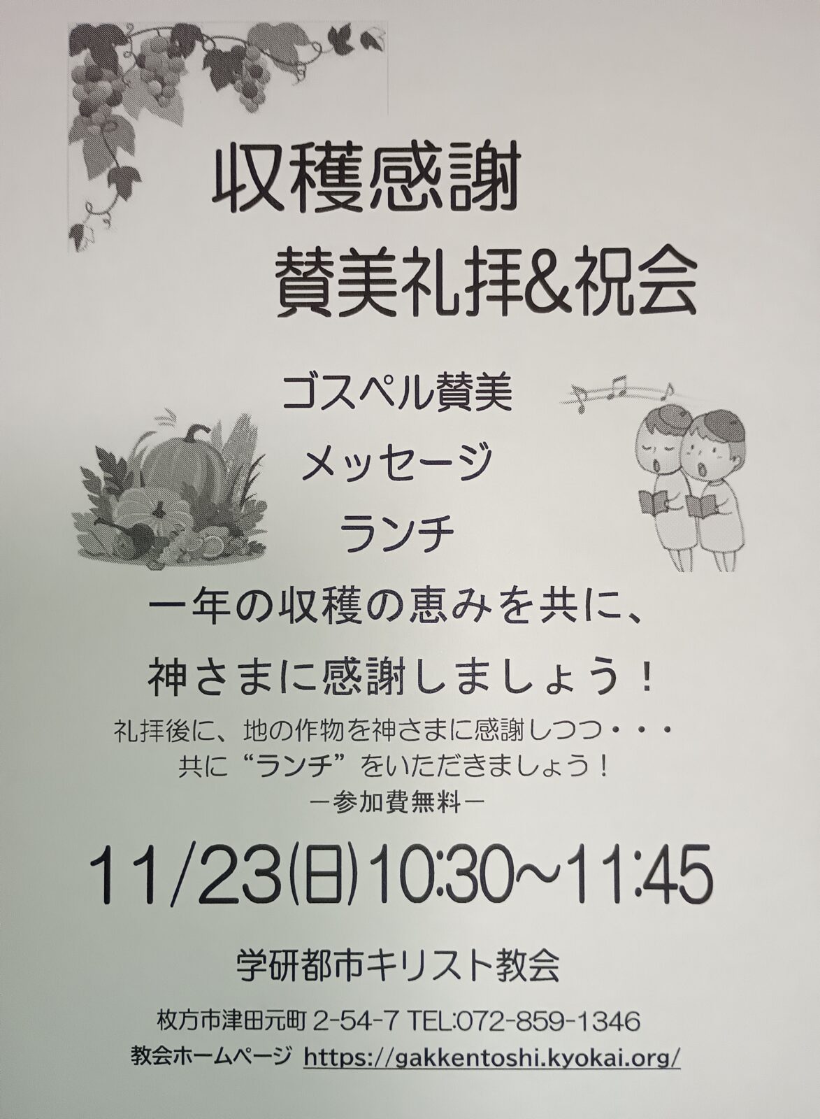| 祈祷会 | 水曜 19:00~20:00 | 賛美の後に聖書のショートメッセージがあり、 それから祈祷課題を各自で祈ります。 |